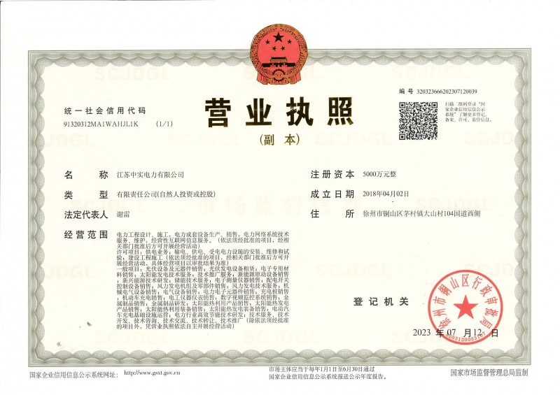 江蘇中實(shí)電力有限公司營業(yè)執(zhí)照