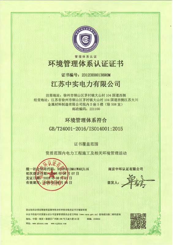 環(huán)境管理體系認(rèn)證證書