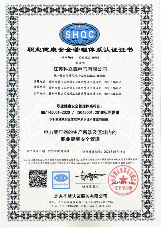 科立德電氣三體系職業(yè)認(rèn)證