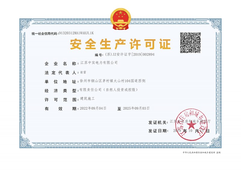 江蘇中實(shí)電力安全生產(chǎn)許可證